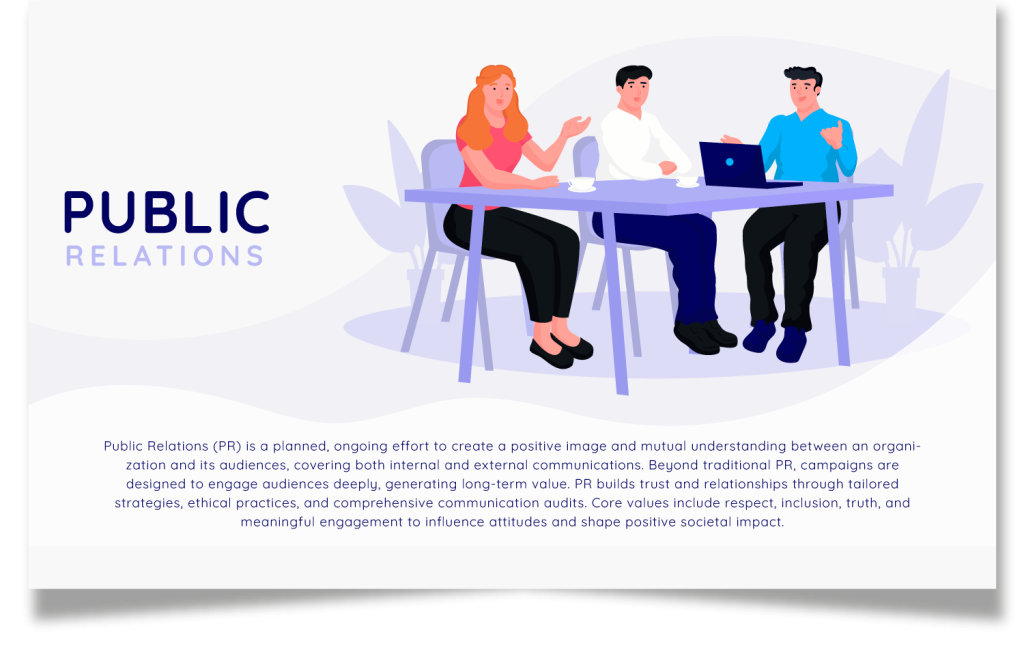 Public Relations (PR), essential for all types of organizations—big or small, commercial or non-commercial—can be defined as “the planned and sustainable effort aimed at creating a favorable image for the organization and fostering mutual understanding between the organization and its publics.”